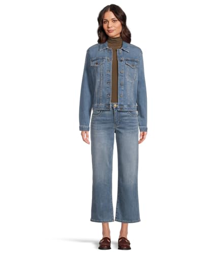 • Top your look off with this slightly cropped denim jacket featuring flap patch pockets and a finished hem that makes this the perfect everyday denim jacket. Crafted from a cozy cotton blend, this jacket also offers a front button closure, long sleeve