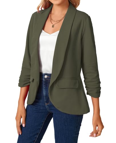 HOT ! MINTLIMIT Womens Blazer 3/4 Ruched Sleeve Shawl Collar Business Work Blazers Open Front Casual Jackets with Pockets