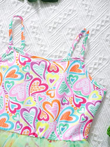 • Kids Girls Adjustable Spaghetti Straps Various Print Mesh Hem Around Waist Jumpsuit Swimming Wear