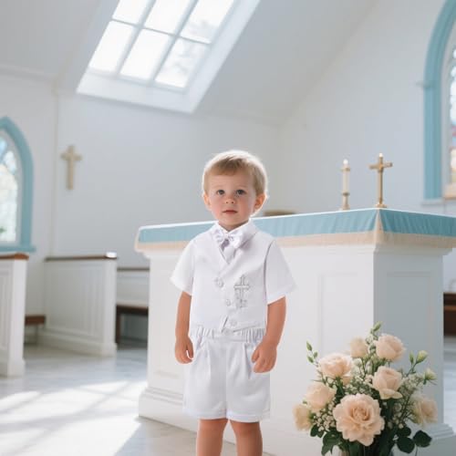 Booulfi Baptism Outfits for Boys Baby Boy Outfits Christening Gifts White Suits with Dress Shirt Pants 1