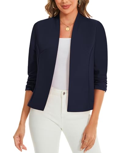 • 【Features】 MINTLIMIT Blazers for women business casual featured 3/4 Ruched Sleeve, Half lined, Elegant collarless, Open front closure, Short length. This women's stretchy blazer is designed to keep you stylish and comfortable in any setting.