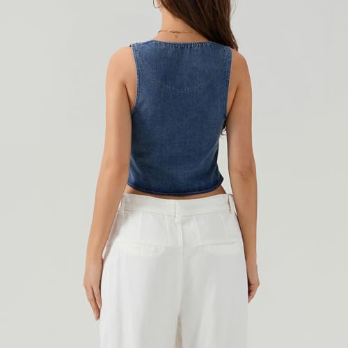 • Design: Summer cute jean vest for women, features with sleeveless, deep v neck, solid color, tie up front, cropped length, Front two decorative pockets, slim fit button denim vest top for teen girls, y2k retro waistcoat top for women, lace up closure, women corset jean tank top, Make you look slimmer and sexy.''