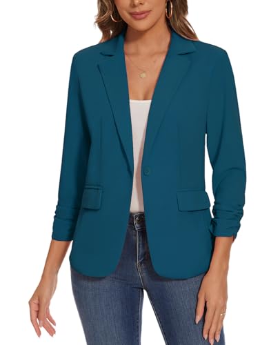 • ✿FEATURE: Trendy casual blazer for women features Ruched 3/4 Sleeve, Stretch Fabric, Notch Lapel, One-Button Closure, Back Vent, Front Lining, Two-side pockets, Slim Fit.