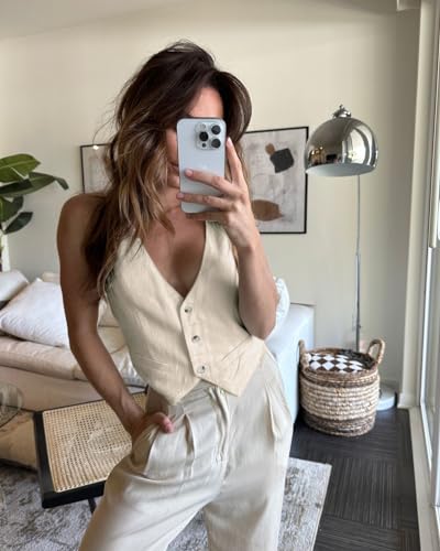 Mina Self Womens Linen Vest Tank Tops 2025 Summer Lightweight V- Neck Cute Cropped Casual Fashion Beach Vacation Corset Top 6