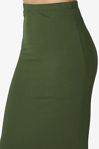 HOT ! TheMogan Women's High Rise Buttery Soft Lined Mid Calf Bodycon Midi Pencil Skirt Olive S