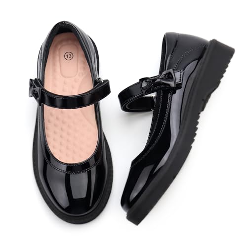 JABASIC Girls Black School Shoes Bow Oxford Mary Jane Flats 6