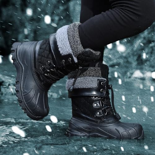 Girls & Boys Snow Boots Waterproof, Fur Lined & Insulated Warm, Easy On/Off, Non-Slip for Sledding & Snowy Play, Little Kid/Big Kid 3