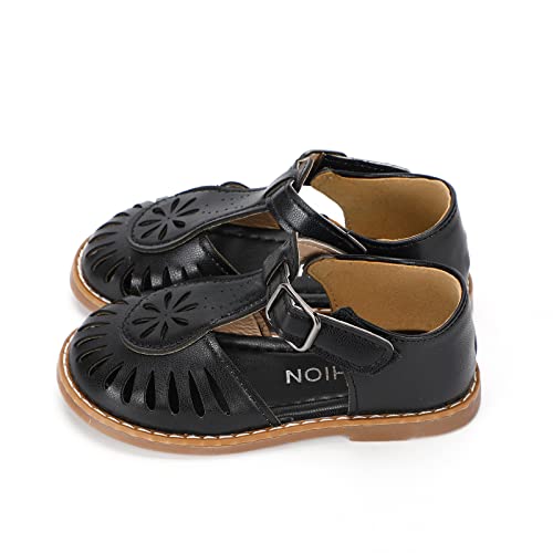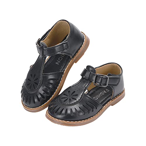 Girl's Leather Sandals Closed-Toe Princess Summer Dress Shoes (6 Toddler, Black, Numeric_6) 6