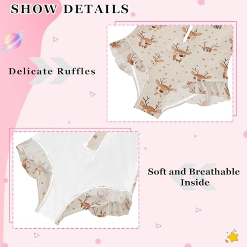 Cute Reindeer Animals Girls Long Sleeve Swimsuit Rash Guard One Piece Bathing Suits Zipper 3-12T 5