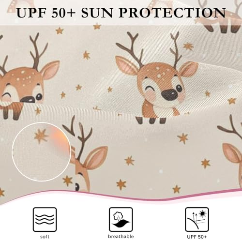 Cute Reindeer Animals Girls Long Sleeve Swimsuit Rash Guard One Piece Bathing Suits Zipper 3-12T 2
