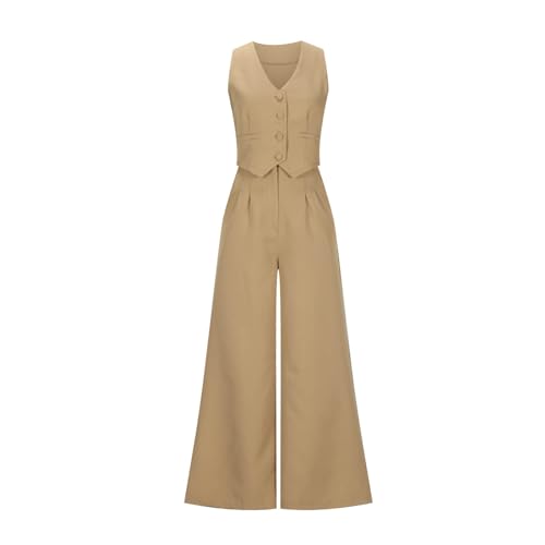 HOT ! Women's 2 Piece Outfits 2024 Casual Dressy Button Down Sleeveless Blazer Vest Wide Leg Pants Sets Work Business Suits
