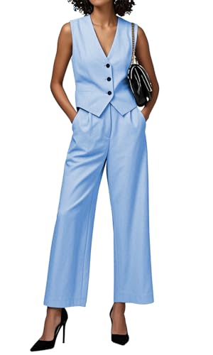 Vest Pants Suits for Women Dressy 2 Piece Business Casual Outfits Button Down Vest Tops 2