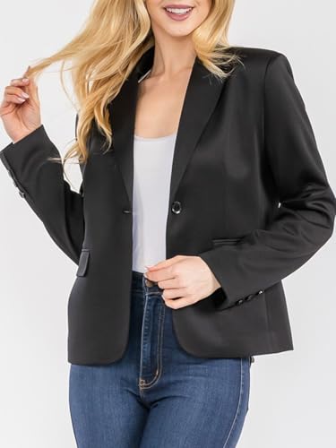 • Classic Design: The Women's Suit Jacket features refined tailoring, a classic solid color, single button closure and notched lapel collar. Two side functional flap pockets require removing the stitching before use.