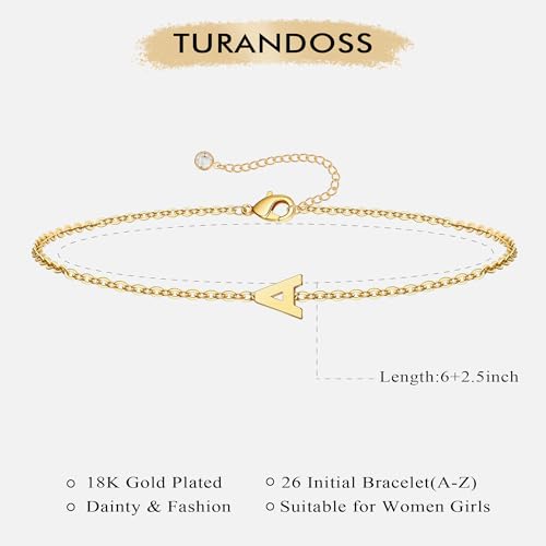 HOT ! Turandoss Gold Initial Bracelets for Women Jewelry Gifts - 18k Gold Plated Letter Initial Bracelet Dainty Gold Bracelets for Women Initial Bracelets for Women Trendy Jewelry