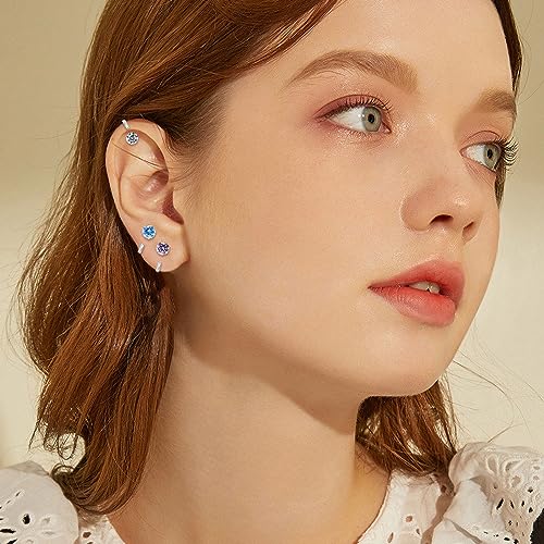 GLLBTPT Small Huggie Half Hoop Earrings CZ Tiny Cartilage Hypoallergenic Stud Earrings for Women Teen Girls (blue) 7