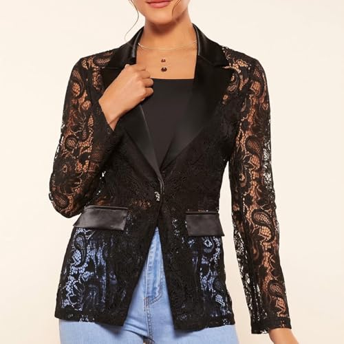 • FEATURE: Women blazers for work, contrast mesh, floral lace, lapel collar, long sleeve, single button, button front, elegant style, semi-sheer, blazer jackets for women