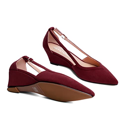 More information about SKYSTERRY Womens Wedding Suede Slip On Pointed Toe Dress Wedge Low Heel Pumps Shoes 2 Inch