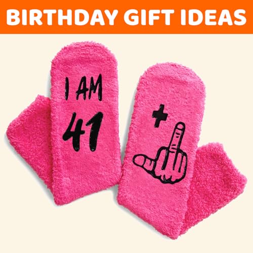 • 42ND BIRTHDAY GIFT IDEAS: Celebrate her milestone with our birthday socks. These pink socks with the phrase "I AM 41+1" make a fun and thoughtful gift!